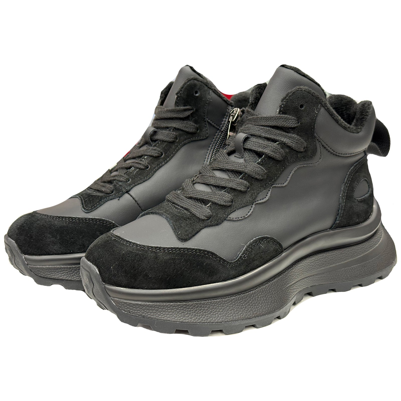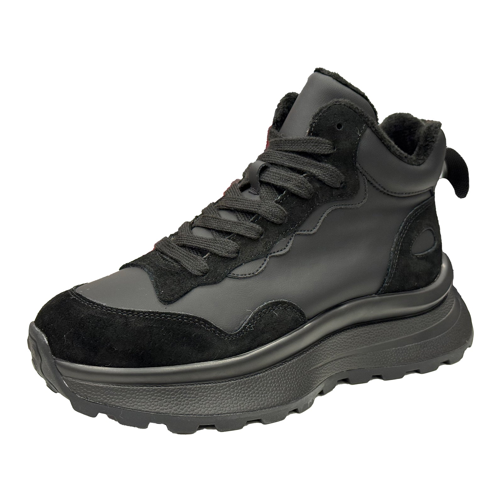 Ghete Berliner negre din piele naturala. Interior: material textil/sintetic.