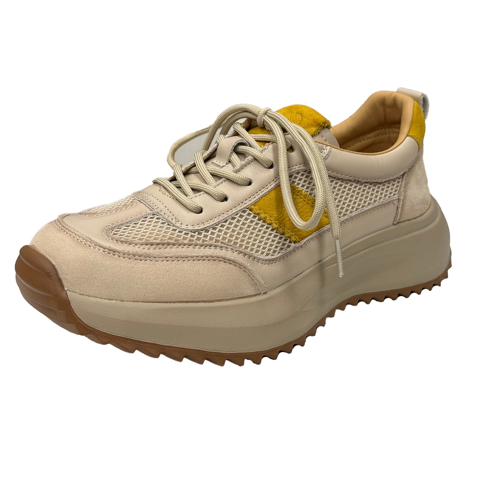 Pantofi Franco Gerardo galben combi din piele naturala + material textil-sintetic interior-exterior.